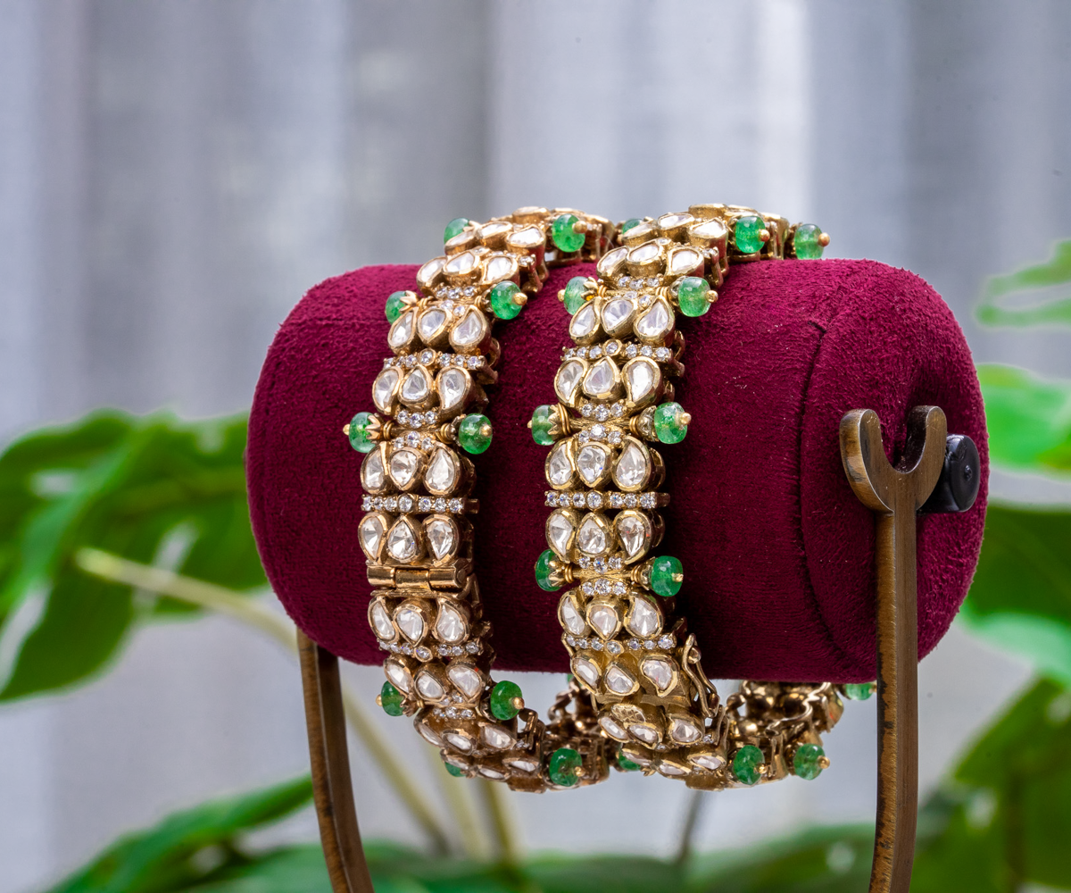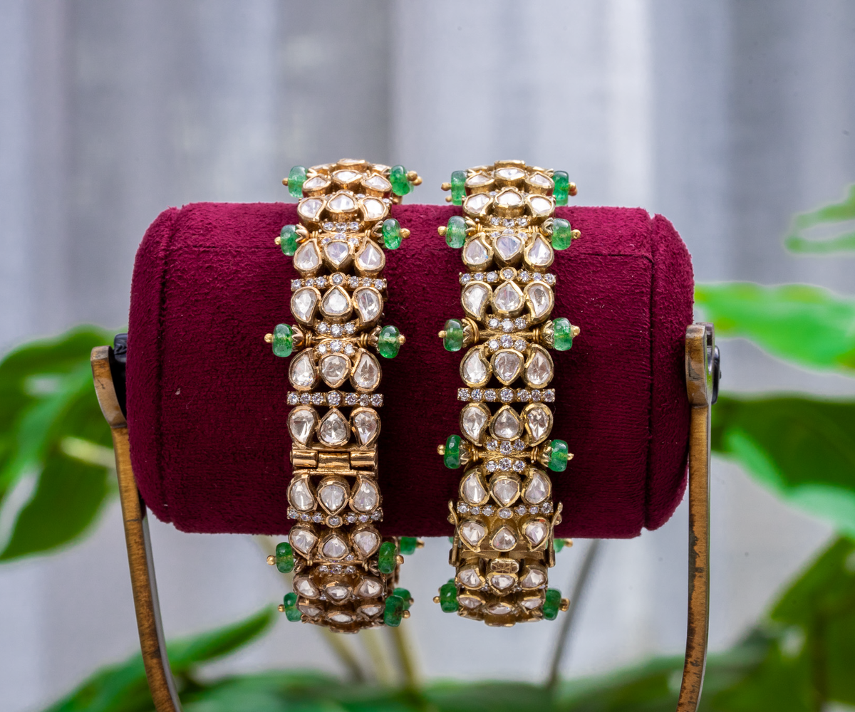 Emerald Accented Moissanite Kada